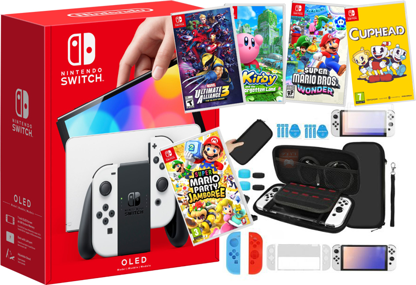 חבילת GOLD גיימינג נינטנדו סוויץ OLED הכוללת 5 משחקים מהטובים ביותר לבחירה + ערכת 12 אביזרים