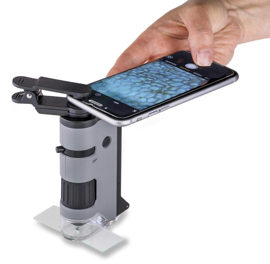 MP-250 MicroFlip מבית CARSON הוא מיקרוסקופ כיס עוצמתי עם כושר הגדלה / זום של בין פי 100 עד פי 250 המצוייד בנורת – LED עם אור לבן ואור אולטרה סגול (UV), בסיס זכוכית נושא מסוג Flip Down וקליפס להצמדה לסמארטפון מדגם – Digiscoping MP-250.
