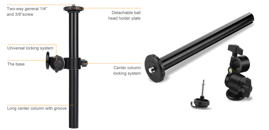 ראש זוויתי מתכוונן לחצובה - K&F Concept KF31.010 Rotatable Multi-Angle Center Column for Camera Tripod & Locking System