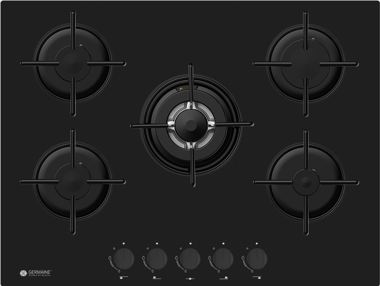 כיריים גז 5 להבות זכוכית שחורה Germaine GER-HOB-5-ZONE-GLB