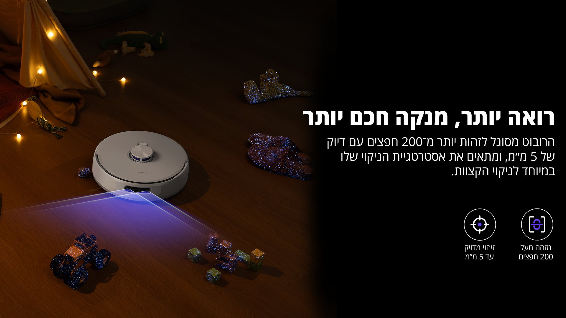 רואה יותר, מנקה חכם יותר – מזהה יותר מ-200 חפצים עם דיוק של 5 מ"מ.