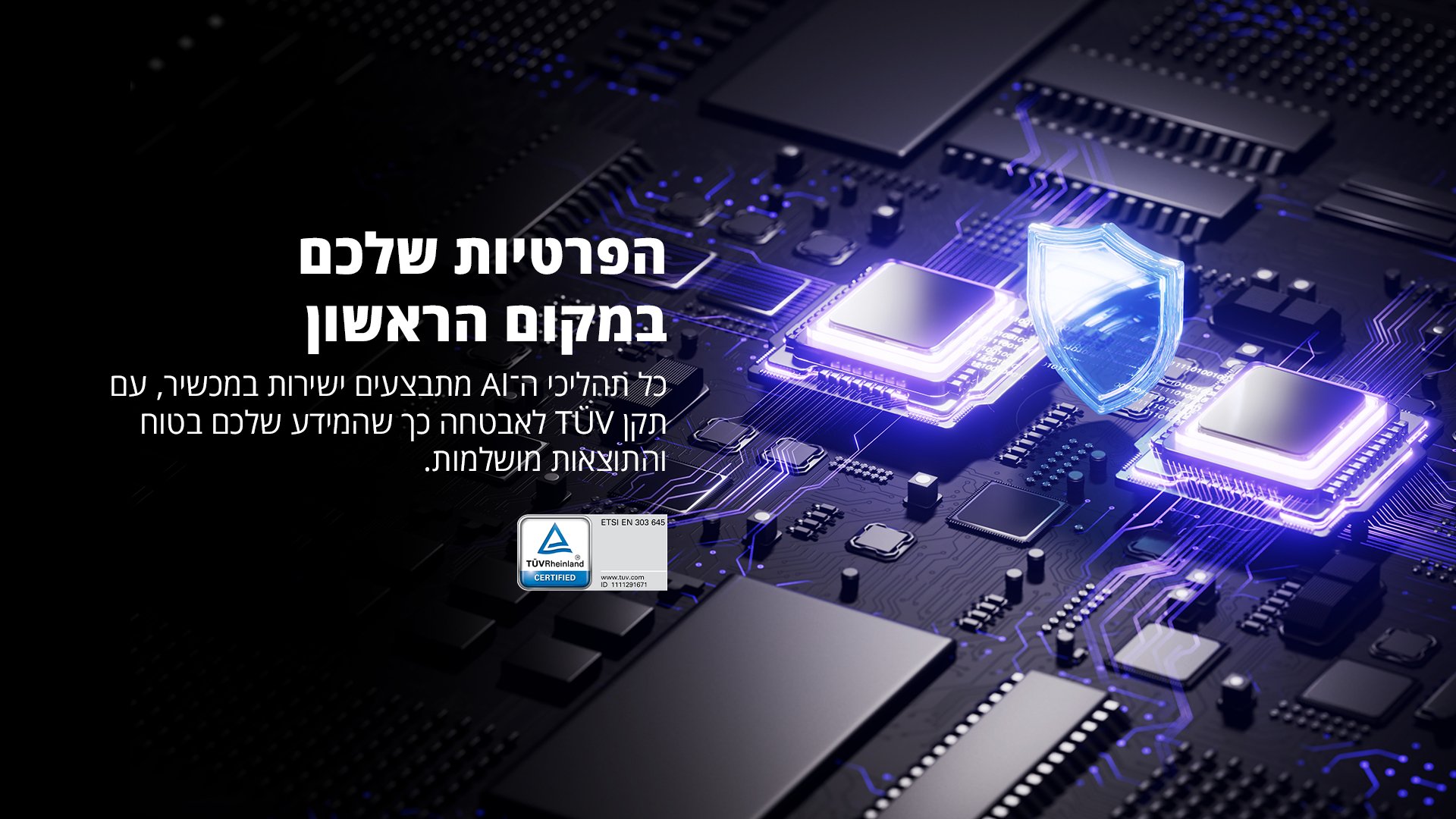 כל תהליכי ה־AI מתבצעים ישירות במכשיר, עם תקן TÜV לאבטחה כך שהמידע שלכם בטוח והתוצאות מושלמות.