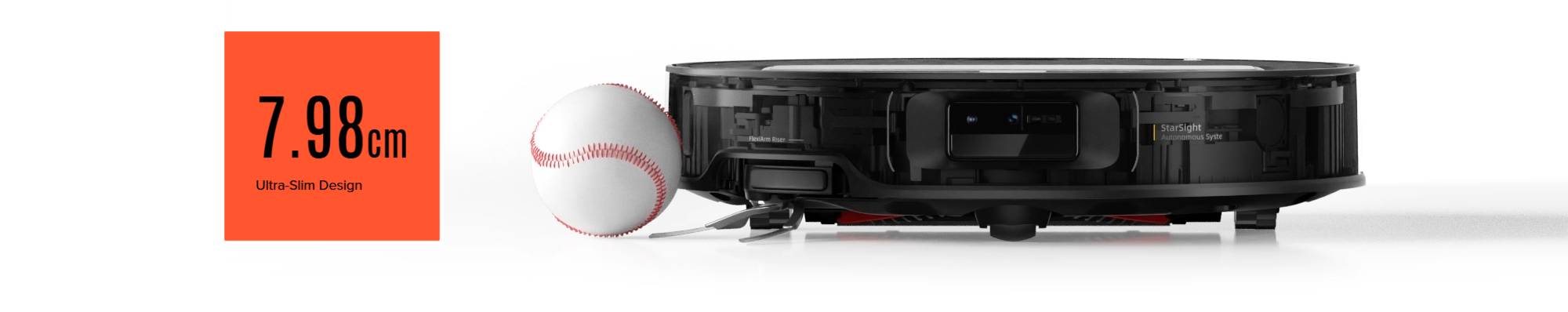 עיצוב דק במיוחד בגובה של 7.98 ס”מ בלבד – העיצוב הדק והקומפקטי ביותר של Roborock עד כה.
