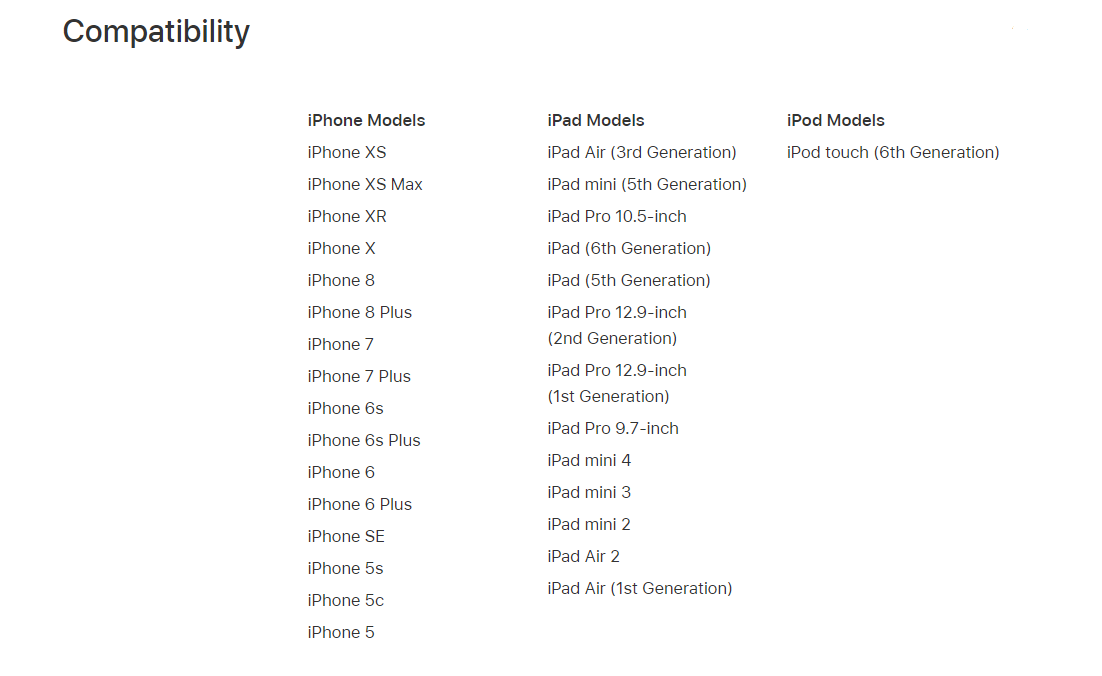 אוזניות EarPods  עם חיבור Lightning שעובדות עם מכשירים בעלי מערכת הפעלה iOS 10 ומעלה כולל iPod touch, iPad, ו-iPhone.