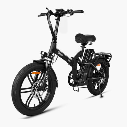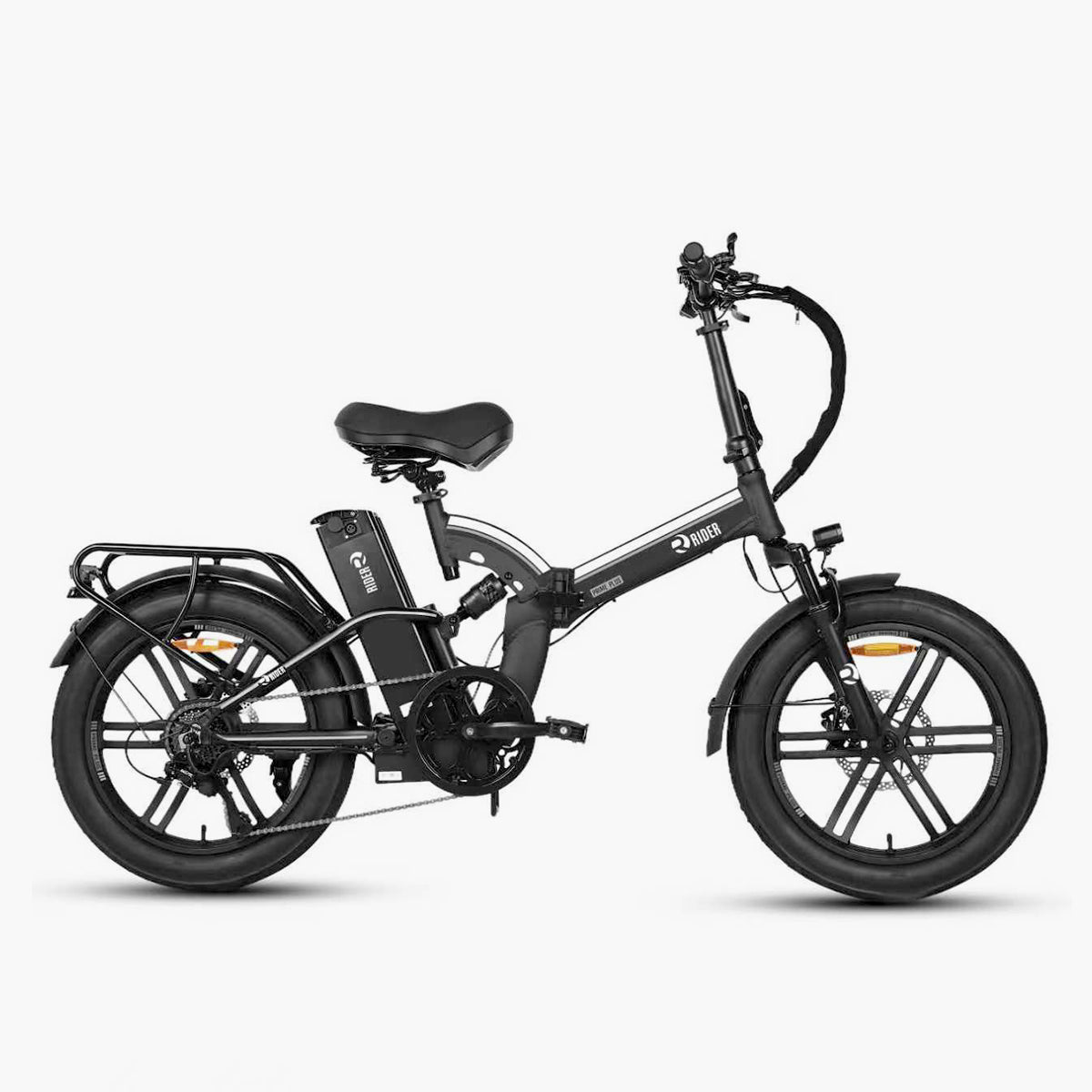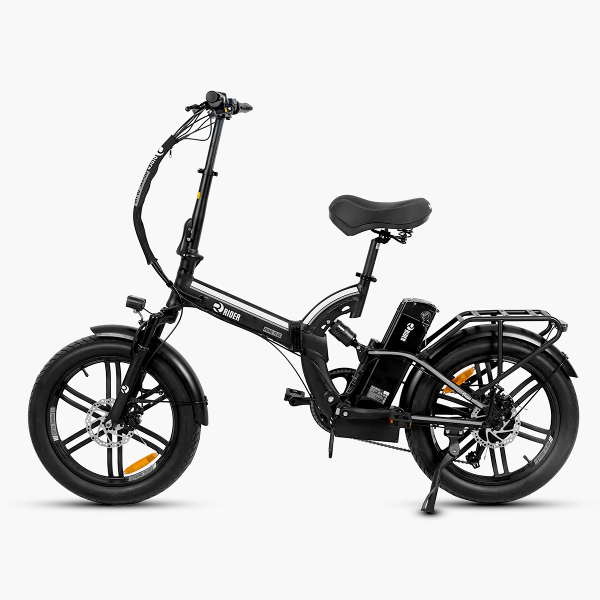 RIDER Prime PLUS אופניים חשמליים בעלי שלדת אלומיניום עם סוללה נשלפת של 48V/18AH המספקת טווח נסיעה של עד 50 ק"מ. האופניים בעלי ברקסים הידראוולי (שמן) - קידמי ואחורי. מערכת שיכוך מלאה (בולמי זעזועים קידמי ואחורי). צמיגים בגודל 20/3 אינץ' המספקים יציבות מקסימלית. האופניים מאובזרים בכיסא "ספה" נוח, סבל אחורי גדול המאפשר התקנה של כיסא אחורי לילדים, צג לד צבעוני, פנס וצופר
