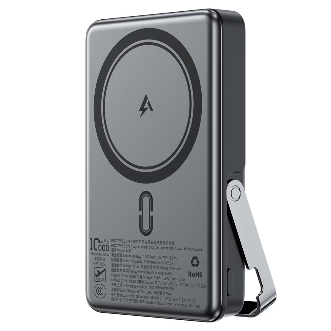 ה-M17 הוא מטען נייד עוצמתי ואלגנטי המשלב טעינה מהירה, טעינה אלחוטית מגנטית ועמידות גבוהה – כל מה שצריך כדי לשמור על הסמארטפון טעון לאורך כל היום, ללא התעסקות מיותרת.