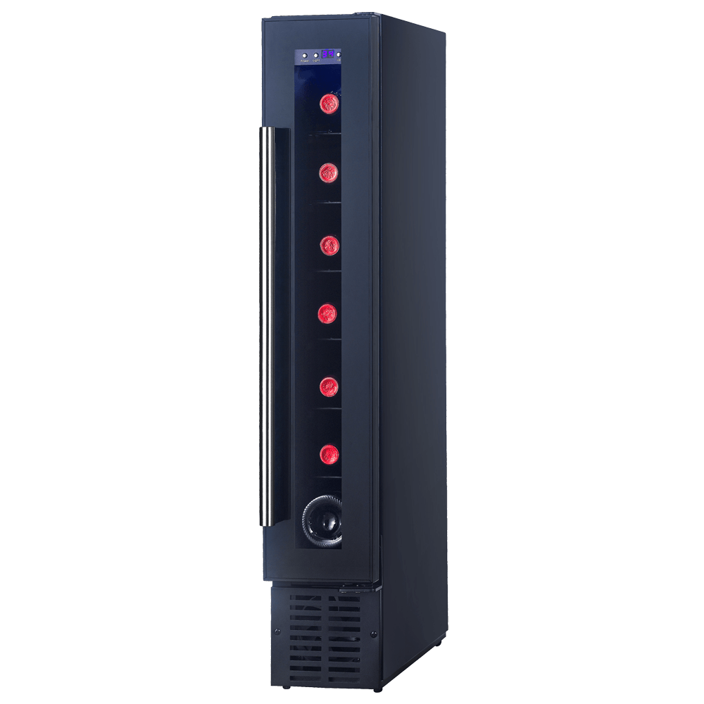 מקרר יין בנוי צר במיוחד. מיועד לאחסון 7 בקבוקי יין לבן ואדום.