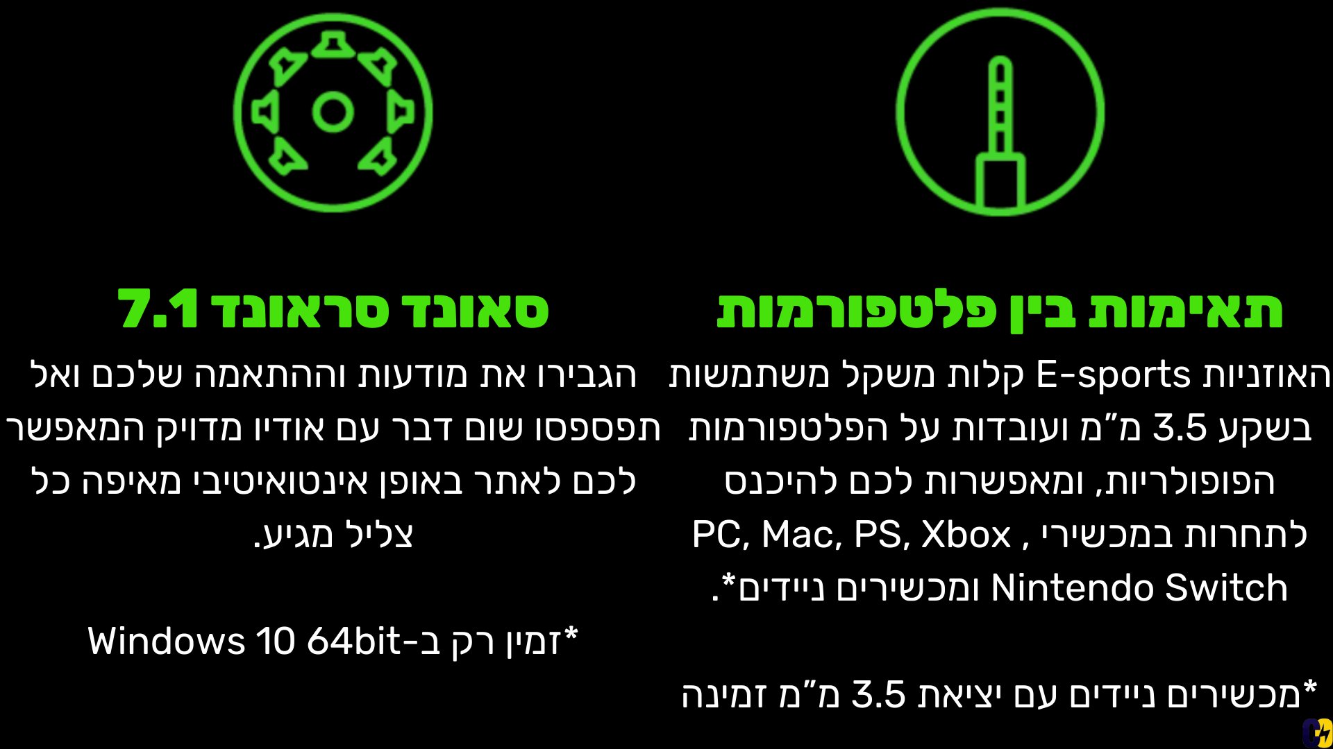 סראונד 7.1 שקוע | חיבור 3.5mm Analog | מיקרופון מבטל רעש מתכוונן
