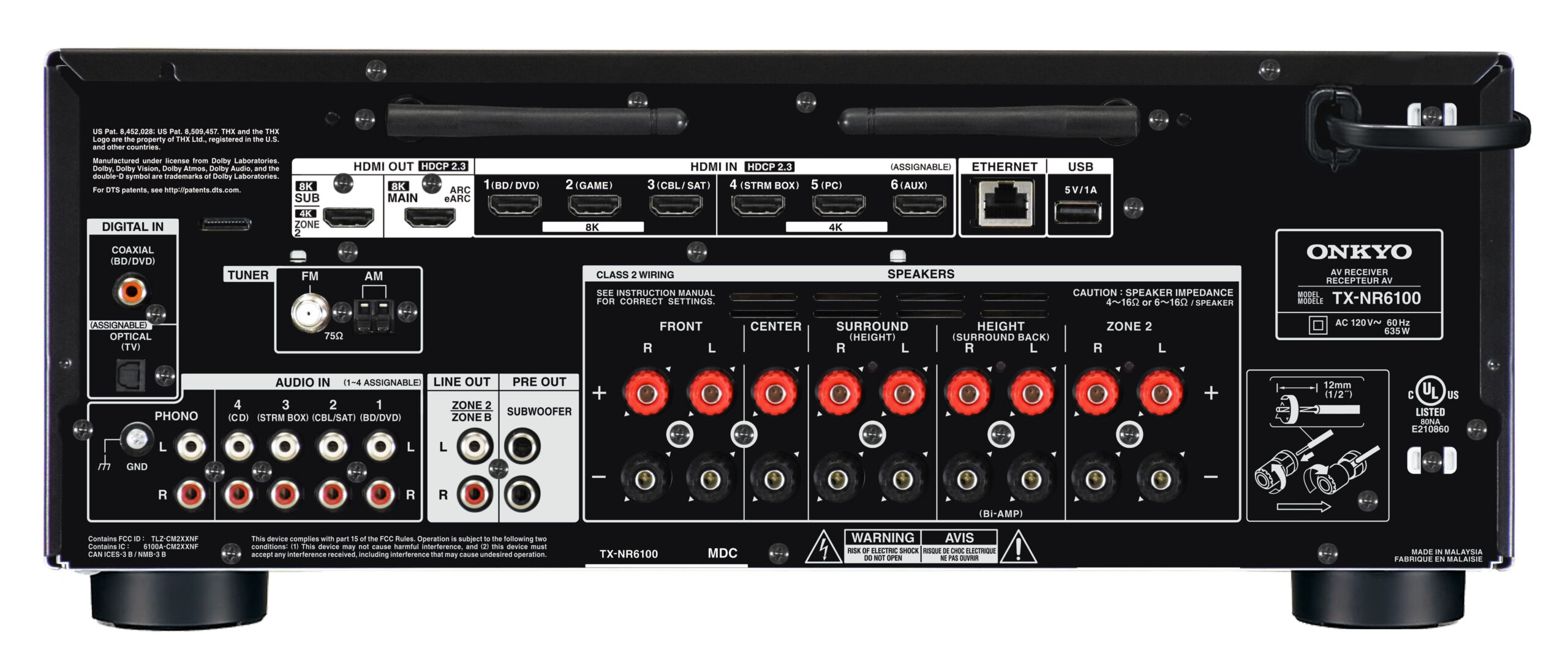 • 6 HDMI inputs and 2 outputs (Main Out [eARC], Sub/Zone 2 Out)