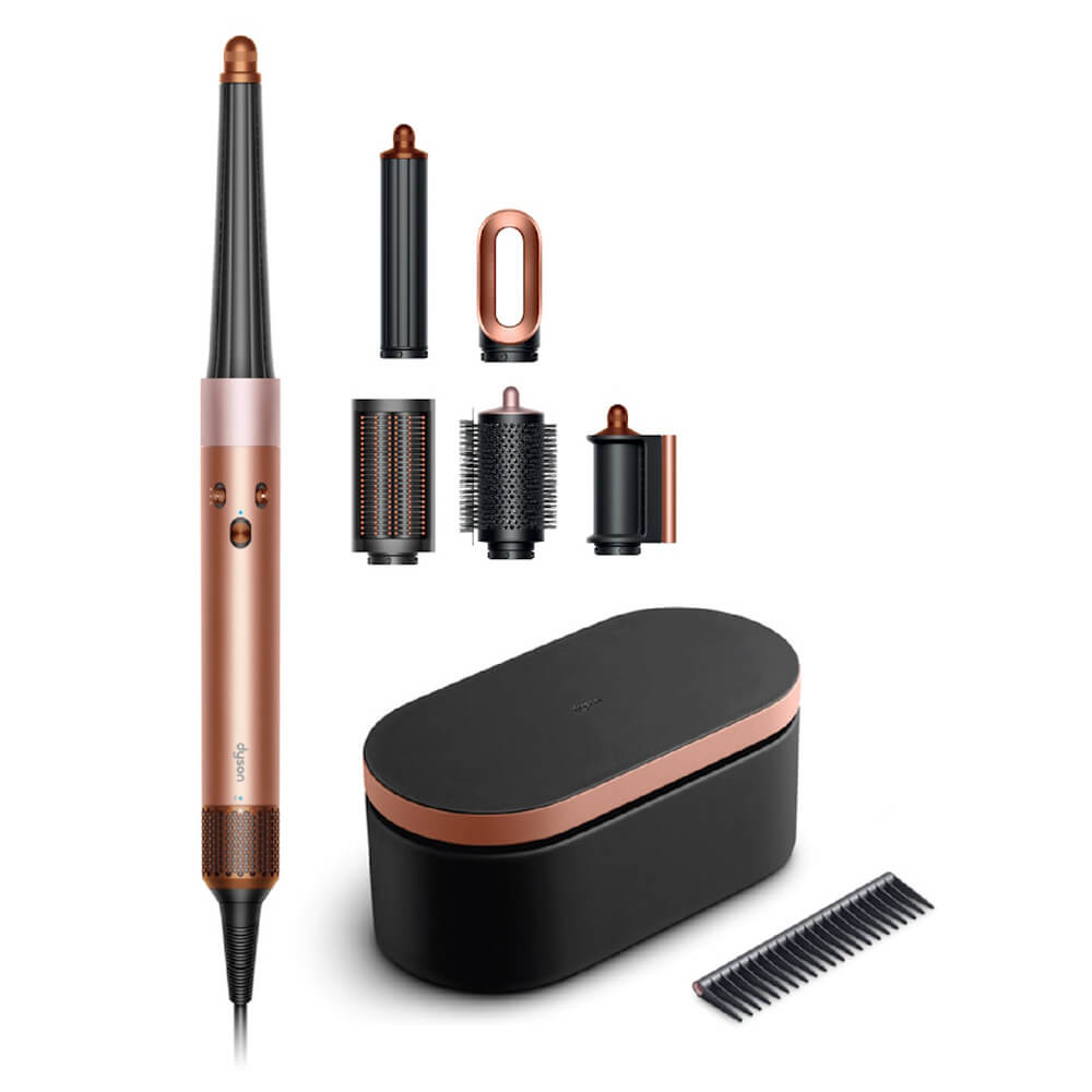 באריזה:מעצב ומייבש שיער בצבע רוז גולד ורודמסלסל Airwrap בצורת חרוטאביזר לייבוש מהירמחליק Dryer+Flyawayמסלסל Airwrap בקוטר 40 מ”ממברשת עגולה גדולה ליצירת נפחמברשת החלקה רכהתיק אחסוןמסרק רחב שיניים רכה להתרת קשרים