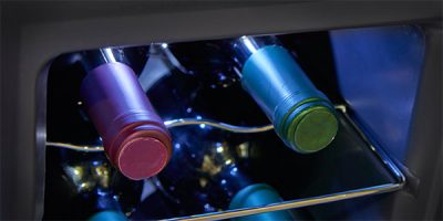 דלת הזכוכית הכפולה מסננת קרני UV העלולות לפגוע באיכות היין, ובמקביל מאפשרת לך להשגיח מקרוב ולאורחיך להתרשם מאוסף היין שלך.