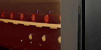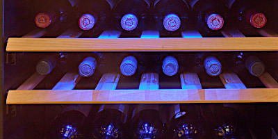 תאורת ה-LED הכחולה מאירה את אוסף היין בצורה אופטימלית, מונעת התחממות בתוך המקרר ותורמת לחיסכון באנרגיה.