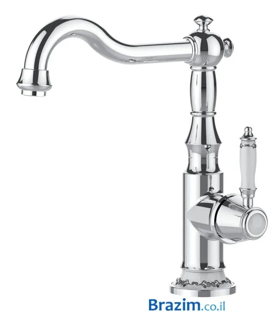 הדבר הראשון ששמים לב אליו הוא גימור האופל ניקל הייחודי. זהו לא ניקל מבריק סטנדרטי, אלא גוון עמוק עם מראה מוברש עדין, המעניק לברז תחושה של פריט שעבר מדור לדור. העיצוב הקשתי והידית המעוצבת משלימים את המראה הכפרי-יוקרתי ומוסיפים תחושה של חמימות ונוסטלגיה לחדר הרחצה שלכם.