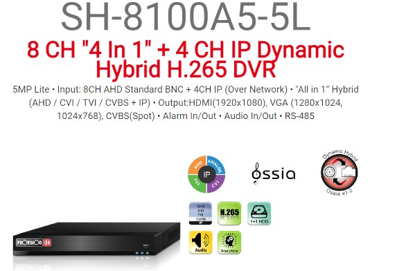 מכשיר הקלטה DVR SH-8100A5N-5L 8CH+4CH IP AUDIO IN/OUT דגם SH-8100A5N-5L PROVISION