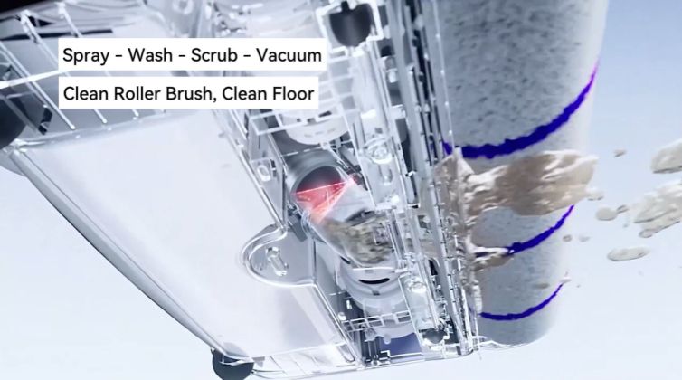 רולר מברשת רצפה המגיע עד הקצה, לניקיון מלא, לאורך כל קירות הבית, צידי הרהיטים והמדרגות.