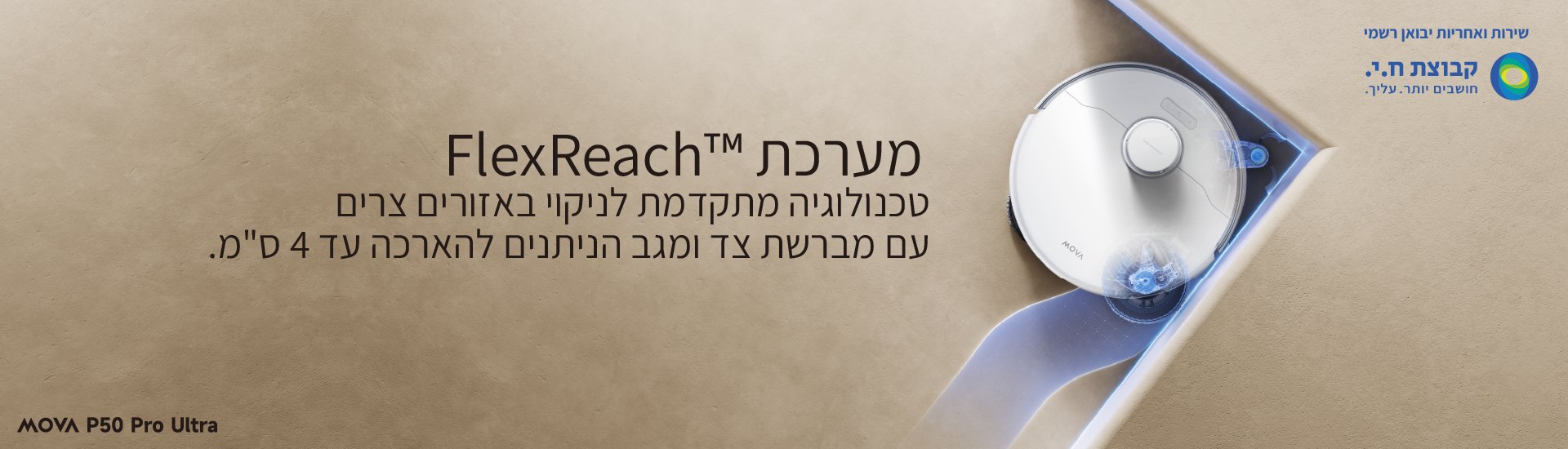 מערכת FlexReach™ – טכנולוגיה מתקדמת לניקוי באזורים צרים כמו פינות, חריצים ומתחת לרהיטים נמוכים.