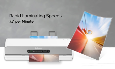מכשיר למינציה Fellowes Amaris A3 + מארז דפי A4 למינציה 100 יחידות + מארז 100 דפי A3 למינציה + גיליוטינה טרימר Fellowes Proton A3 =