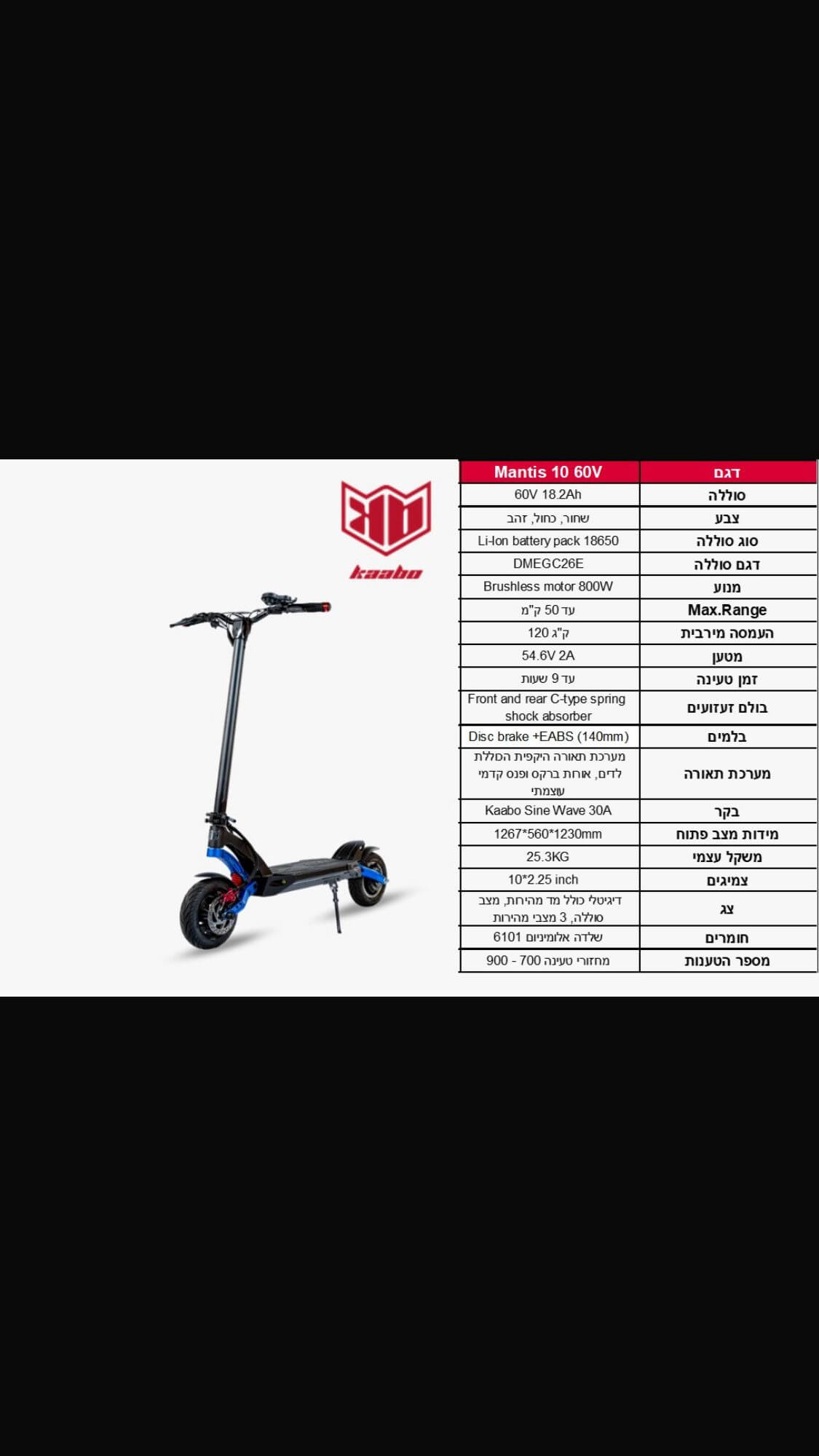 הקורקינט החשמלי Kaabo Mantis 10 העוצמתי קורקינט חשמלי עם חווית נסיעה יוצאת דופן הנועדה להוציא את המיטב בכל רכיבה, ולהפוך את הנסיעות היומיות שלך להרבה יותר נוחות.
