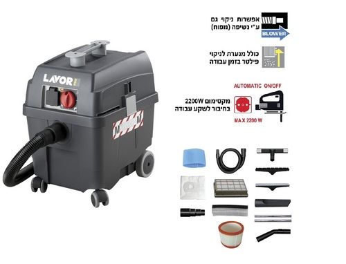 שואב אבק 27 ל'+ מנערת אבק מהפילטר לאבור - המתג המוביל למכונות שטיפה,שואבים ומקרצפות