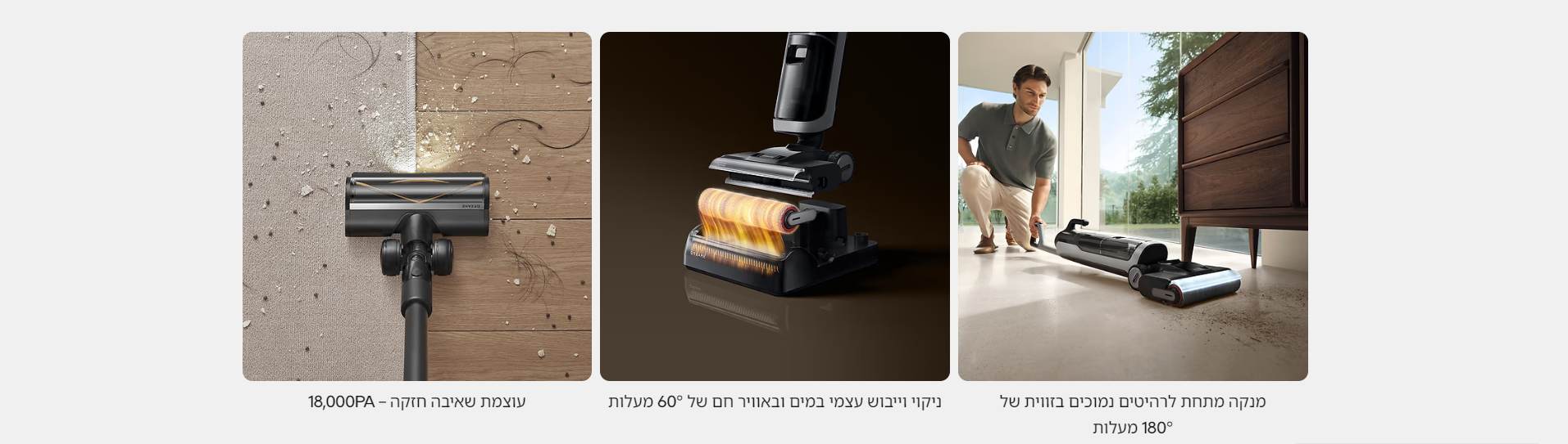 ניקוי בזווית של 180 מעלות – ניקוי צמוד לרצפה (לא צריך לשבור את הגב יותר)