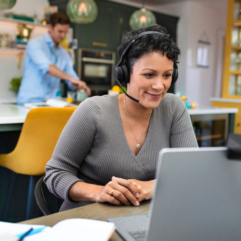סדרת Jabra Evolve2 55, שתוכננה כדי להקל על הדברים, מוכנה מהקופסה, עם התאמה קלה וקישוריות כפולה.