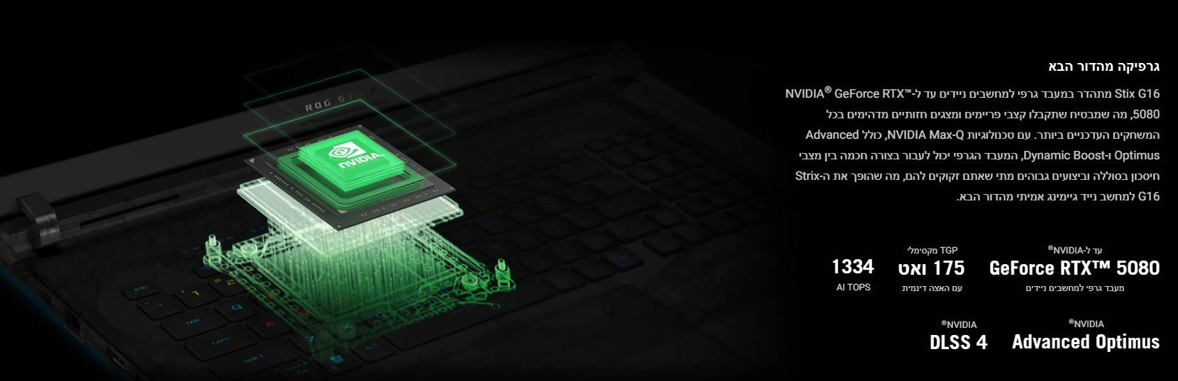 | כרטיס גרפי | NVIDIA® GeForce RTX™ 5080 Laptop GPU |