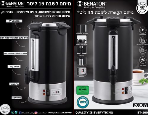מיחם "תפארת" לשבת 15 ליטר BENATON בנטון שחור מט BT-100 ד.ש.ש אלקטרוניקה
