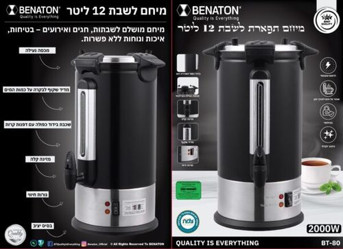 מיחם "תפארת" לשבת 12 ליטר BENATON בנטון שחור מט BT-80 ד.ש.ש אלקטרוניקה