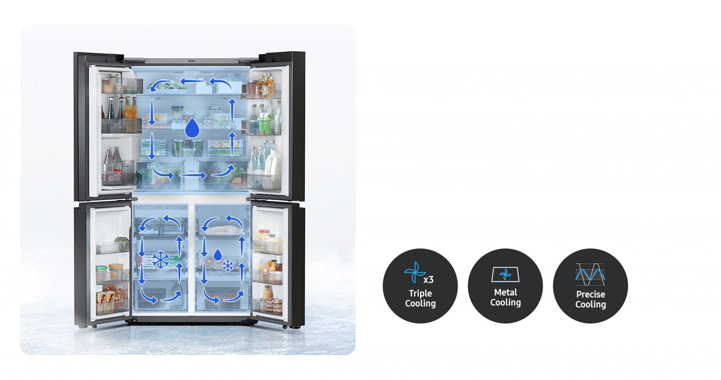 מערכת קירור משולשת, בלעדית לסמסונג, הכוללת 3 מאיידים ו-3 מאווררים מאפשרת