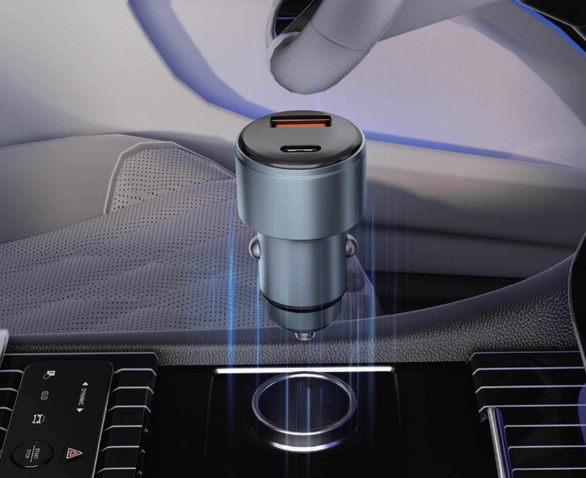 המטען מתוכנן במבנה קומפקטי המשתלב בשקע הרכב, עם חיבור יציב המאפשר פעולה רציפה גם בנסיעות ארוכות ובתנאי דרך משתנים.