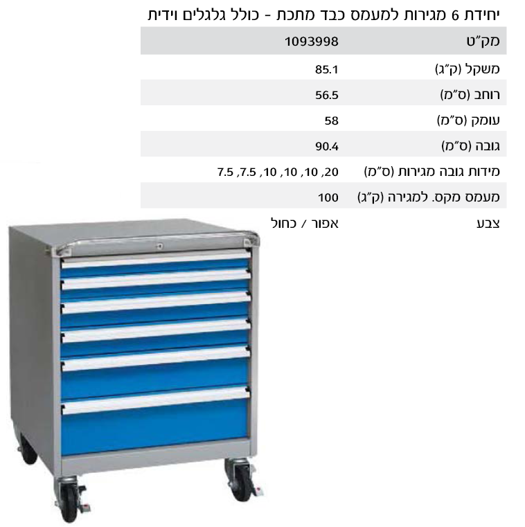 יחידת אחסון 6 מגירות ניידת 565X580X904 מ"מ ROHER