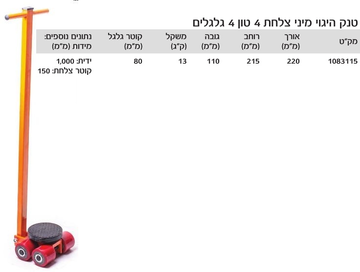 טנק היגוי מיני צלחת כולל ידית 4 טון 4 גלגלים מבית ROHER