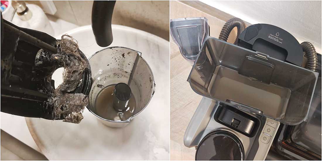לשלושת המכשירים תחזוקה שוטפת שגרתית מדי: מהשואב מרוקנים את האבק ממיכל הלכלוך ומעת לעת שוטפים את הפילטר. השואב-שוטף כולל בעיקר מילוי מים נקיים וריקון מים עכורים, לצד הליך הניקוי האוטומטי בעמדה. שואב הספות גם כולל ניקוי עצמי, אבל הוא הרבה יותר קצר, ידני ומתרחש כולו בידית המברשת. לצד התחזוקה השגרתית, צריך גם להתחשב מן הסתם באביזרים מתכלים כמו פילטר, מברשת, אביזרי ניקוי ותמיסת ניקוי שנכנסת אל מיכלי המים. איך לא, היצרנית ממליצה על נוזל הניקוי שלה בלבד ובחנות הרשמית מיכל בנפח 1 ליטר נמכר ב-59 ש"ח.