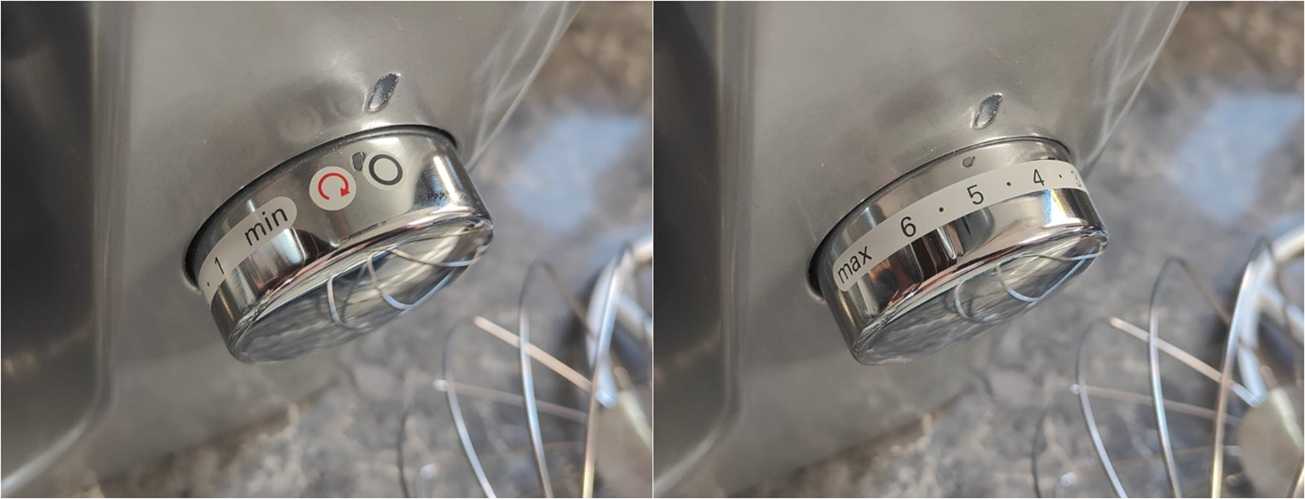 (40% מהציון הסופי)נתחיל ממידות המיקסר: גובה 35 ס"מ, רוחב 24 ס"מ ועומק 38 ס"מ. כלומר נתונים סטנדרטיים בקטגוריית המיקסרים, מה שאומר שהוא תובע המון מקום במטבח וקרוב לוודאי שאחרי שסיימתם איתו את העבודה, תעדיפו לאחסן את ה-KMX761 במזווה או בכל מקום שאינו השיש שלכם. בורר מהירות שולב לאורך גוף המיקסר כמקובל, שמציע 6 מהירויות. מעל הבורר נורת ביקורת וכמנגנון בטיחות, המיקסר עוצר אוטומטית ברגע שראש המיקסר מורם. מבחינת נראות, ה-KMX761 בולט בנוף, לטוב ולרע: הקודקוד המבריק מעניק מראה יוקרתי נוצץ, אבל גם כזה שמתעד המון טביעות אצבע ש"מלכלכלים" את המראה, במיוחד כשמרימים ומורידים את ראש המיקסר בשגרה.