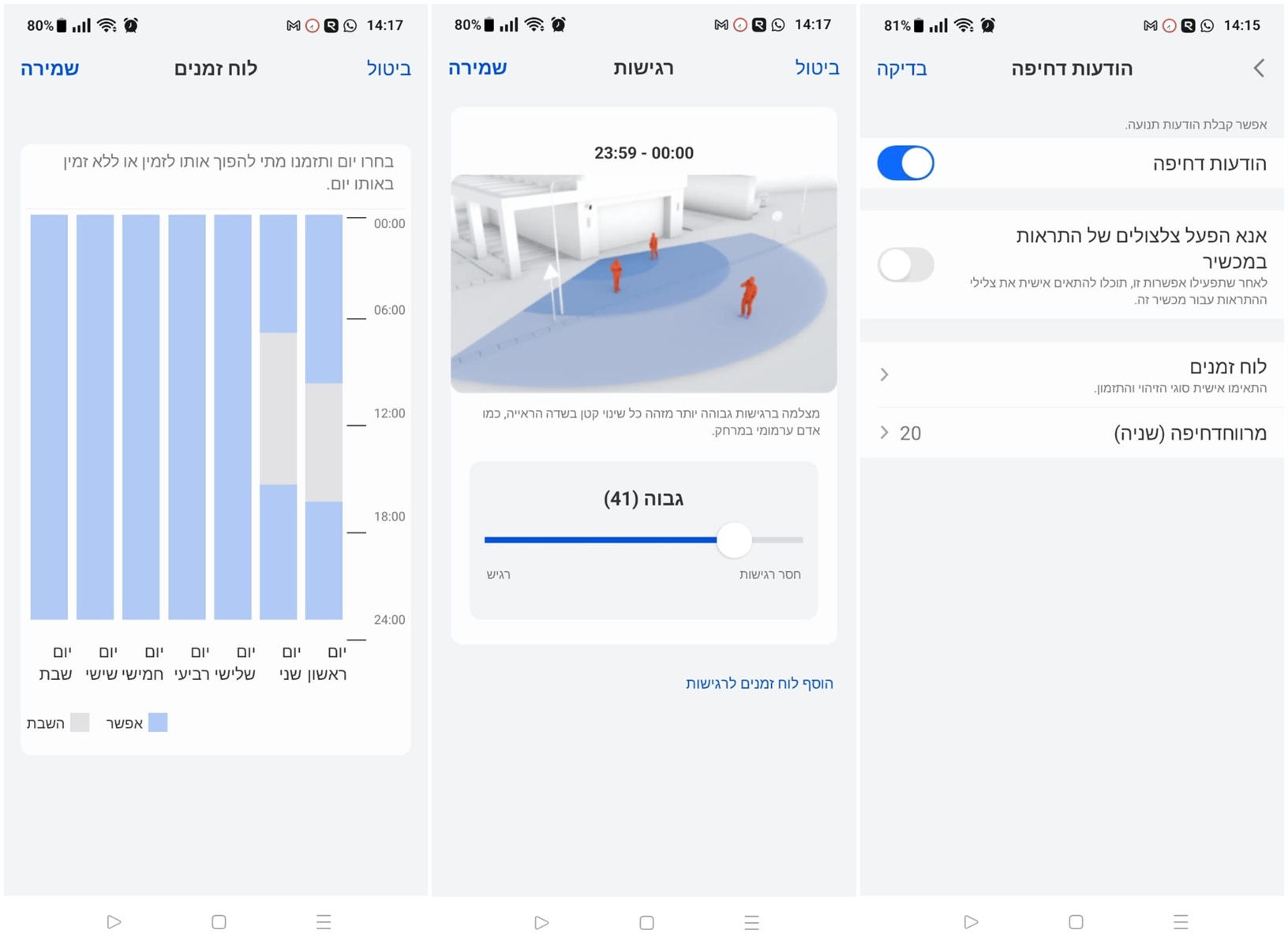 מצד שני, המצלמה עמידה לפי תקן IP64 כך שהיא אטומה לאבק אך מסוגלת להתמודד רק עם התזות קלות של מים - לא גשם ישיר - מה שמגביל את אפשרויות המיקום שלה. האפליקציה מוצגת בעברית שנראה שתורגמה אוטומטית לפני 4 שנים והיא לא מכילה סוללה או חיבור לפאנל סולארי, כך שתהליך ההתקנה יכול להיות מסורבל.