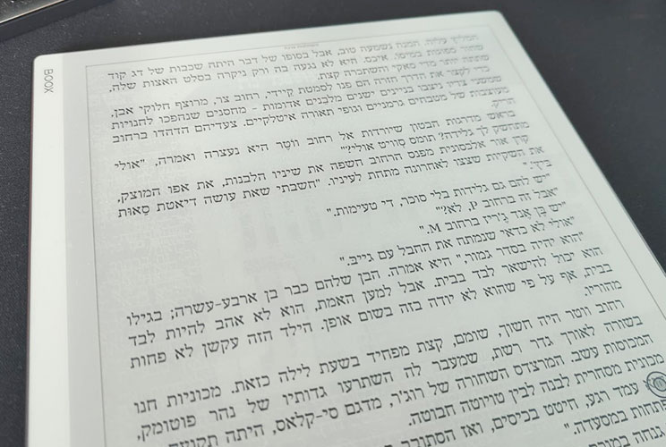 ברור שאם תגבירו בהירות או תבחרו להאזין לספר מוקלט למשל, צריכת האנרגיה תעלה בהתאם. לאכזבתנו ב-Onyx לא מספקים מטען במארז אלא רק כבל USB-C. טעינה מלאה עם מטען גנרי ארכה קצת יותר משעתיים, לא נורא בהתחשב בעובדה שנדרשנו להטעין את ה-Go 10.3 בערך מדי שבועיים.