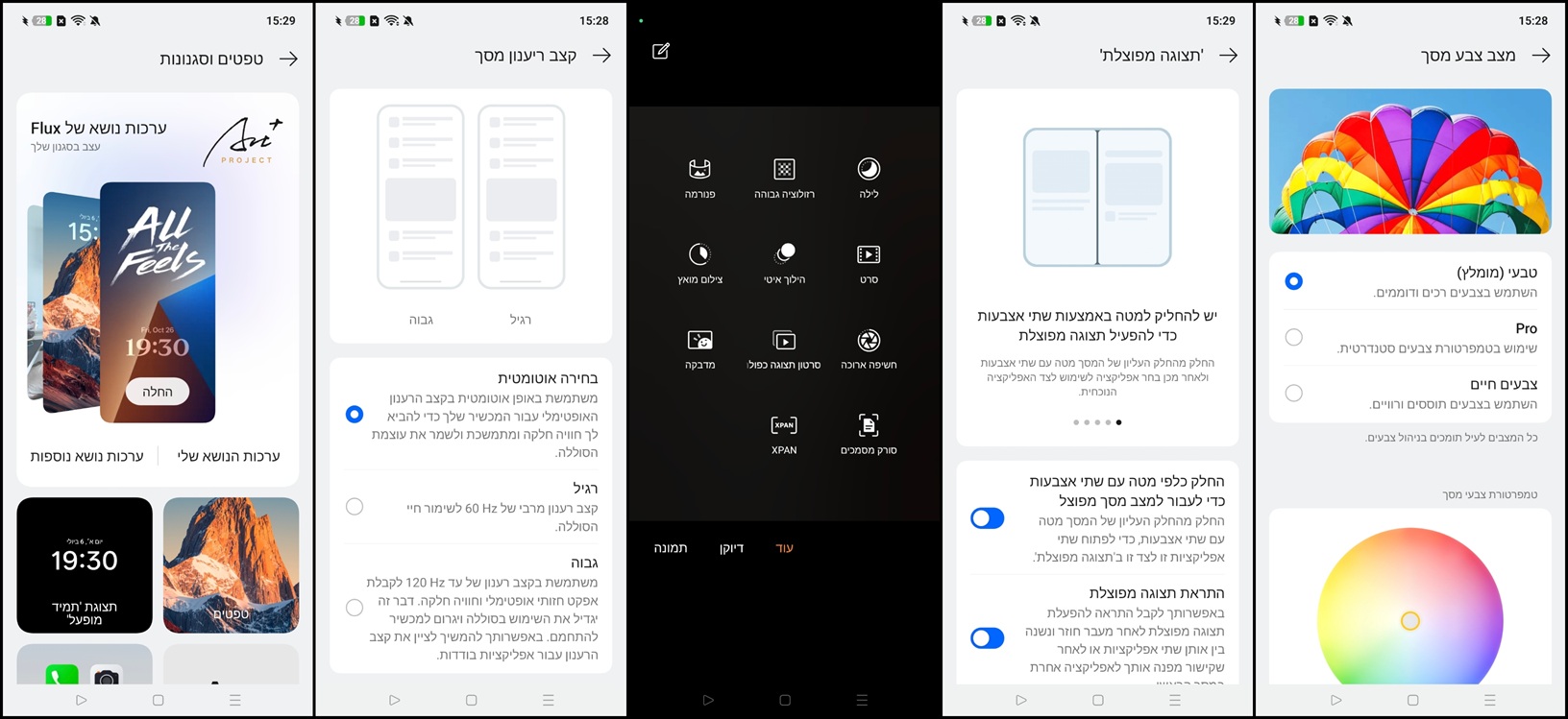 מעל מערכת ההפעלה אנדרואיד 15 "התלבש" ממשק הממשק ColorOS 15 מבית היצרנית. האתגר הכי גדול של המערכת היא להתמודד עם הממשק המשתנה; הרי ברגע בודד הצורה ה"מלבנית" והפופולרית הופכת לכמעט-ריבועית, עם יחס של 1:1.1 מאוד לא טיפוסי בנוף. חדשות טובות; הממשק מגיב מצוין לכל התקלה, בין אם כששינינו את ערכת הנושא או כשבחנו את אפשרויות תצוגת ה-Always On. מעבר לאפשרויות קוסמטיות, ה-ColorOS מזכיר המון ממשקי סיניים מתחרים: הסטת המסך מלמעלה מלמטה מציגה מסכים שונים (התראות/לוח קיצורי דרך), יש כלים ייעודיים גיימינג, ניתן לפצל מסך ויש גם סרגל צדי חכם כמקובל.