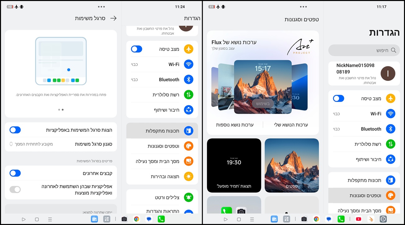 בהגדרות יש גם תכונות מיוחדות ייעודיות ל-Find N5 ולעיצוב המתקפל. כך למשל ניתן להתאים את כל האפליקציות ליחס תצוגה שונה, גם אם זה במחיר של שוליים שמנמנים, אפשר לבחור אילו אפליקציות ייפתחו בחלון נפרד, כמו המקלדת המובנית או Google Meet וכן להציג את סרגל המשימות בחלק התחתון של המסך - תכונה שימושית שהזכירה לנו את ה-Taskbar ב-Windows, שמציגה את התוכנות הפתוחות באותו רגע.