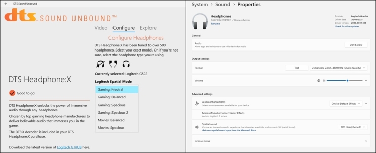 הצהרת Logitech התגלתה נכונה חלקית. כשהתאורה כבויה, ה-G522 מרשימות מאוד: בתום חמישה ימי שימוש תובעניים מאוד שכללו בכל יום כ-8 שעות האזנה למוזיקה ועוד שעתיים גיימינג, כלומר בערך 10 שעות שימוש ביום, בסוללה נותרו עוד 40% סוללה. כלומר 50 שעות סוללה גבו 60% סוללה. תוצאה מצוינת.
