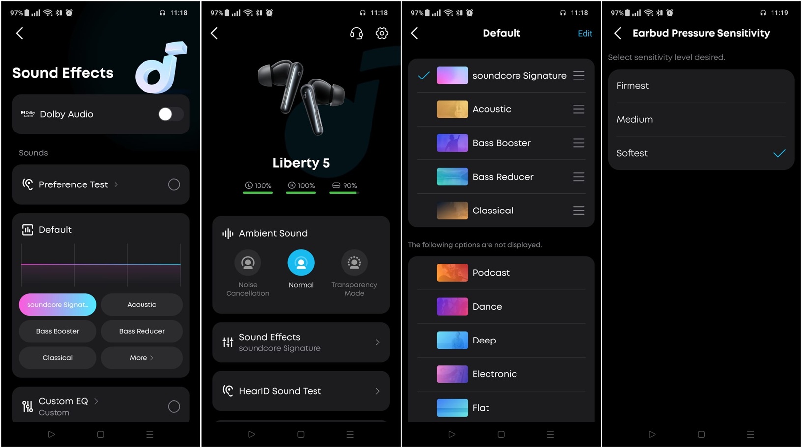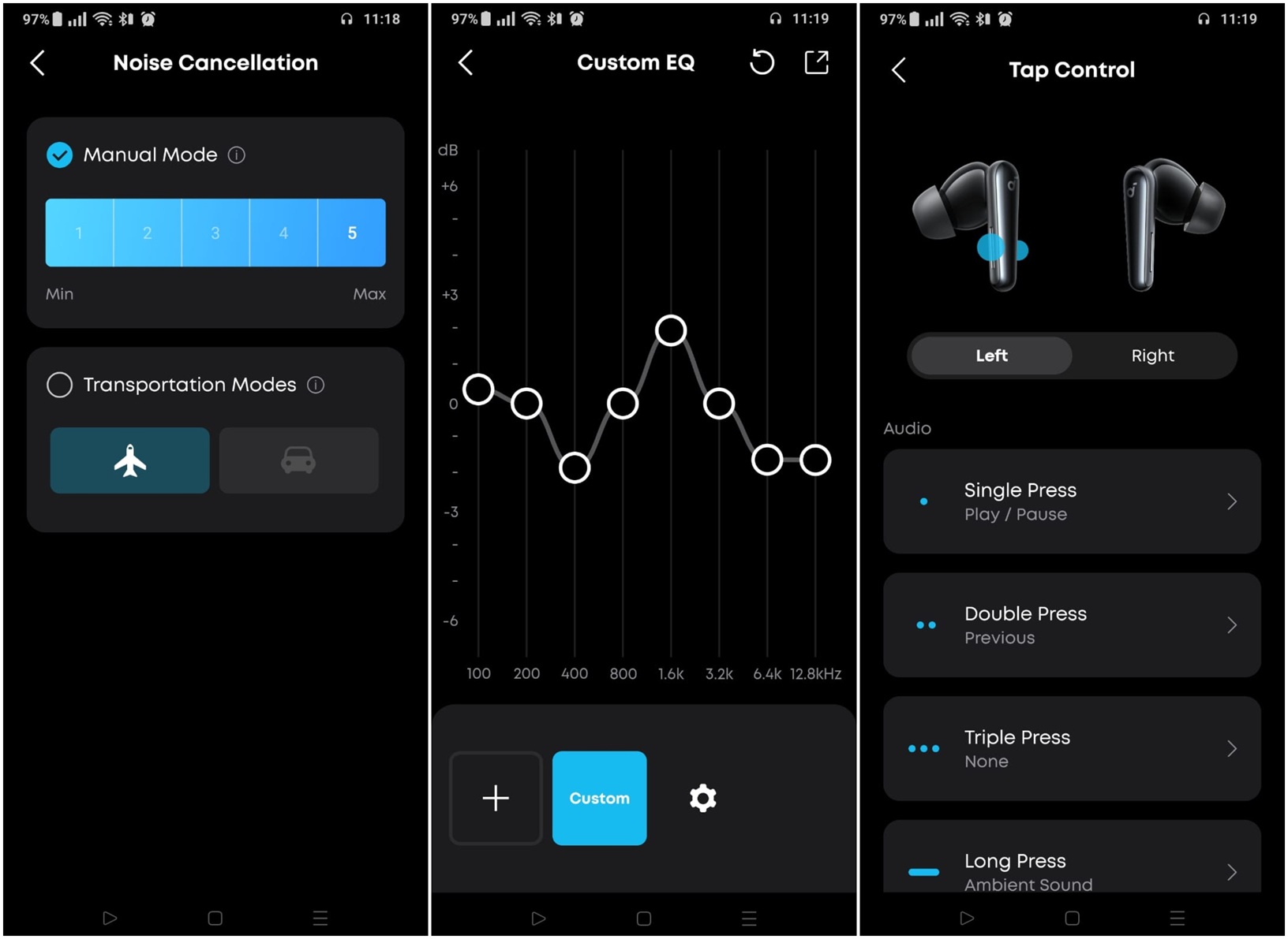 במציאות הנתונים חיי הסוללה מחמיאים קצת פחות: עם סינון רעשים פועל והאזנה למוזיקה בווליום 40%, הצלחנו לסחוט 7 שעות האזנה מה-Liberty 5 - שזה לא מעט, אבל גם לא עומד באותו קנה עם מה שהבטיחו לנו ב-ANKER, בטח כשהווליום היה יחסית בעוצמה נמוכה. האזנה ללא סינון רעשים תספק יותר שעות האזנה, מן הסתם.