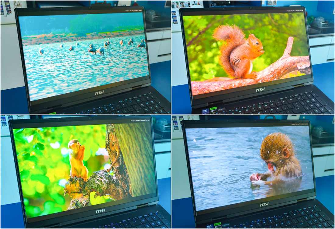 (15% מהציון הסופי)גודל המסך 18 אינץ' מורגשים מאוד והרזולוציה חדה בהתאם: 3840X2400 פיקסלים, כלומר מעין 4K ביחס של 16:10. בצג שולבה טכנולוגיית Mini-LED וקצב הריענון זמין בשיא בתדר 120 הרץ. לצג תקן DisplayHDR 1000, מה שאומר שהוא אמור להציע בהירות של עד 1000nits. לבהירות אכן צריך להחמיא: כשממקסמים את הערך, הבוהק ממש "נפלט" מהמסך והצפייה נוחה פי כמה, תודות גם לציפוי מעל המסך שדוחה השתקפויות מעצבנות.