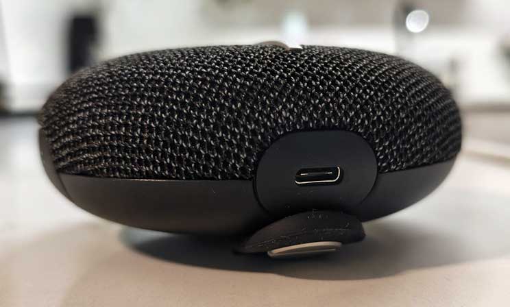 (30% מהציון הסופי)מידות הרמקול במצב שכיבה: גובה 5 ס"מ, רוחב 10 ס"מ, אורך 12 ס"מ ומשקלו 279 גרם. במילים אחרות, לא כבד מדי ובנשיאה ממקום למקום הוא לא מטריח במיוחד, אבל הוא גם לא מהרמקולים הסופר-קומפקטיים שאפשר להכניס לכיס מכנסיים. מבחינת נראות, הרמקול דומה-על-גבול-זהה ל-Home Mini, הרמקול החכם של גוגל; מקדימה אריג בד, מאחור הגב עשוי גומי נוקשה ובאמצע חוצה אותו רצועת סיליקון עם תושבת קטנה לקיבוע הרצועה בצמוד לרמקול. בצמוד לסוף הרצועה מחבר USB-C לטעינת הרמקול.