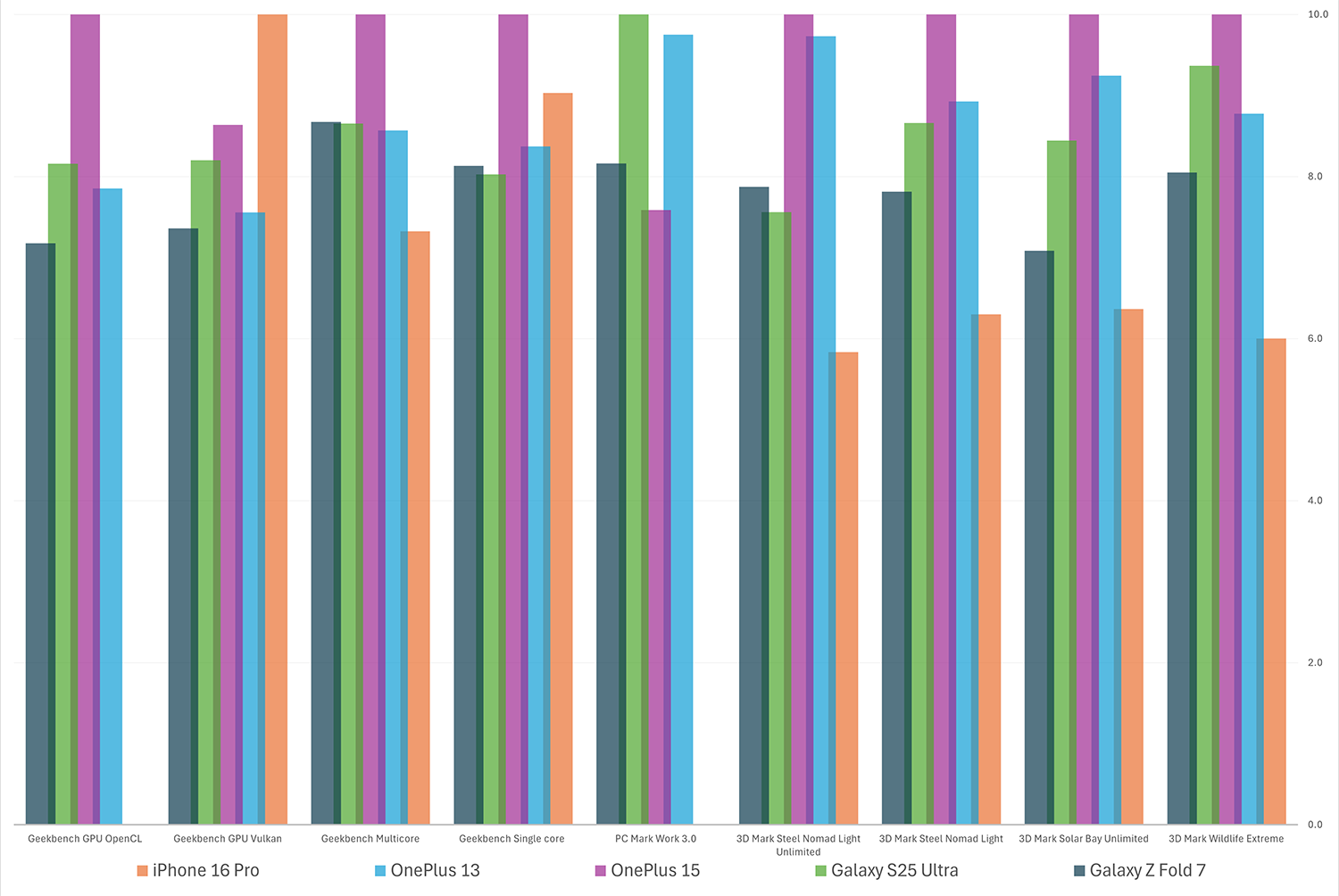 המעבד המובנה הוא Snapdragon 8 Elite Gen 5 ובמבחני הביצועים הסינתטיים הוא ניצח - לעיתים בפער, מכשירי דגל כמו ה-iPhone 16 Pro, Galaxy S25 Ultra וה-Z Fold 7 של סמסונג.