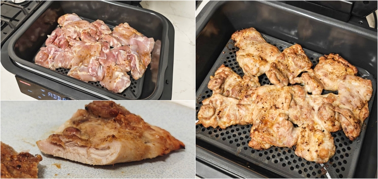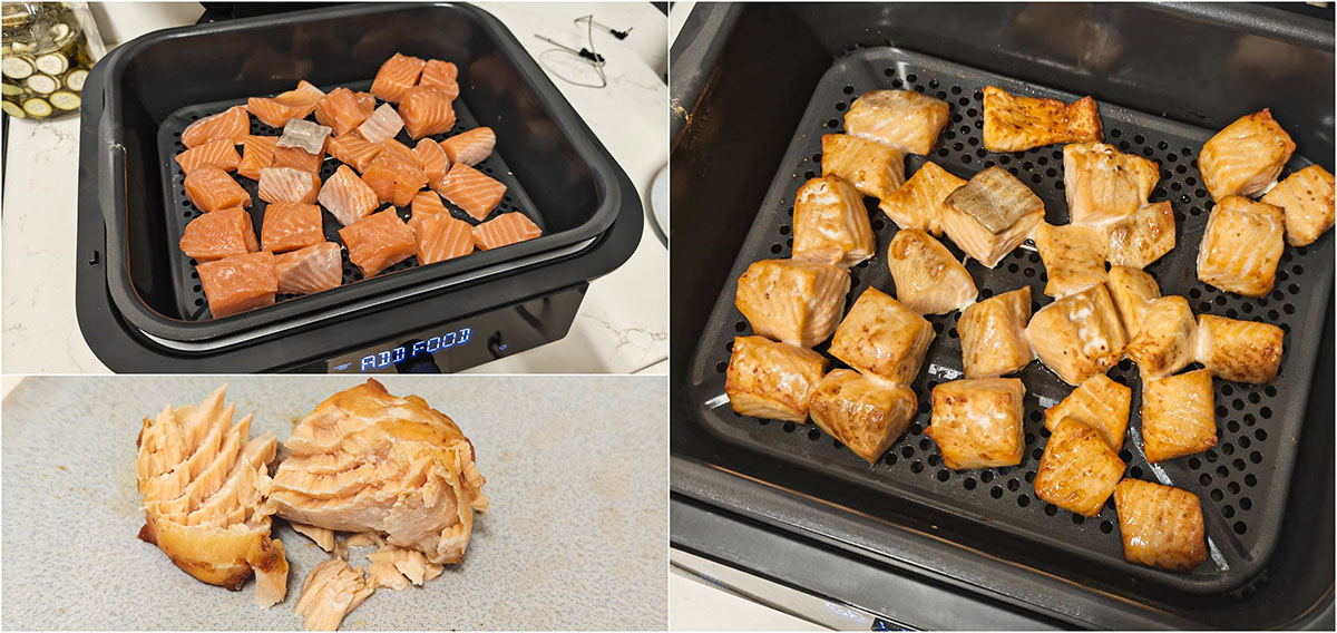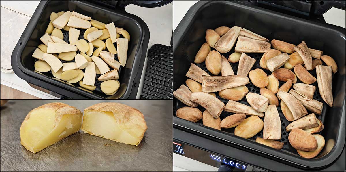 (50% מהציון הסופי)ל-Air Fryer Revolution הספק של 1760 וואט בחלק העליון ו-1500 וואט בחלק התחתון. טווח הטמפ' של המכשיר נע בין 40-200 מעלות, כשתכנית Grill מאפשרת להגיע עד 265 מעלות. לפני שנתקדם לביצועים, צריך להתייחס לזמן החימום מראש שדורש המכשיר. כך למשל עבור 200 מעלות במצב צלייה נדרשנו לחכות כמעט 7 דקות. גם הגעה ל-180 מעלות ארך סביבות 6-6:30 דקות - וזה לא מעט זמן, בטח לעומת מתחרה מוכרת שדורשת בערך חצי מהזמן שדורש ה-Revolution, באותו מצב חימום כמובן. השיא היה במצב גריל, כשחיכינו מעל 17 דקות (!) לסוף הליך החימום מראש.