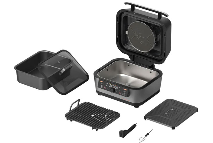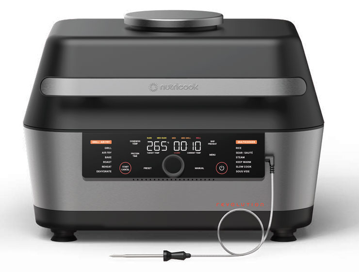 ה-Air Fryer Revolution מבית Nutricook הוא גריל רב תכליתי המבטיח לשלב "איירפרייר עם גריל פנימי רחב במיוחד, לצלייה מדויקת ולבישול עמוק במגוון תוכניות", לפי היצרנית. המכשיר מציע קיבולת של 8.5 ליטר שאמור להתאים לנתחי בשר עבים, מגשי אפייה ועוף שלם וכן מציע מצבי גריל, טיגון באוויר, אפייה, צלייה, חימום מחדש וייבוש. עוד במכשיר: מד טמפרטורה פנימי והבטחה לניקוי קל בזכות ציפוי נון-סטיק. המכשיר זמין בצבע שחור מט עם גימור נירוסטה.