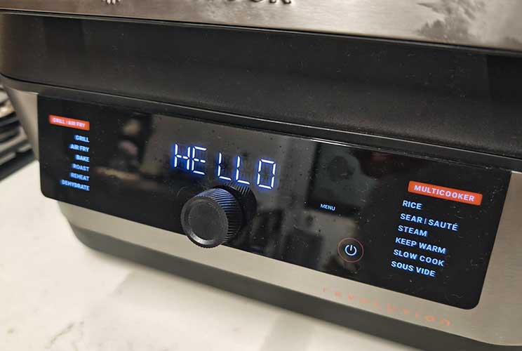 (30% מהציון הסופי)פיזית, ה-Air Fryer Revolution לא שונה מדי מרוב המכשירים הדומים לו בקטגוריה: מידותיו: רוחב 40 ס"מ, עומק 42 ס"מ וגובהו 29 ס"מ. הוא שוקל 12.5 ק"ג, לא משקל שקל או נוח במיוחד להעביר ממקום למקום, אבל הוא עדיין מאפשר שינוע בצורה סבירה במידה ושטח המטבח שלכם מצומצם. באותו עניין, לא אמורה להיות בעיה גם לאחסן אותו במדף רחב במזווה כשמסיימים לעבוד איתו. קחו בחשבון שבדומה למכשירי גריל מתחרים, גם כאן נפלט אוויר חם מאוד מאחור בזמן הבישול, כך שלא מומלץ להצמיד את המכשיר לקיר - וזו עלולה להיות מגבלה אם השיש לא עמוק מספיק. עוד בקופסה קיבלנו סלסלת טיגון, מגש צלייה, פלטת גריל, מד טמפרטורה חכם, מגן התזות, מברשת ניקוי והוראות הפעלה.