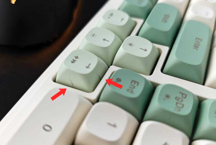 (10% מהציון הסופי)נתחיל בזה שמדובר במקלדת ממברנה סטנדרטית אמנם, אבל יחסית למקלדת שאינה מכנית, המקלדת שוקלת לא מעט - וזה לרוב מרמז על שלדה מסיבית שמעידה על איכות בנייה עדיפה על פני מקלדות פלסטיקיות סטנדרטיות. המקשים עשויים פלסטיק ABS ולא PBT לצערנו והיצרנית מבטיחה עמידות של עד 10 מיליון לחיצות. מקשי ה-ABS לצערנו גילו עמידות סבירות בלבד; ניסינו לשלוף בעזרת חולץ המקשים שקיבלנו בקופסה כמה מהם החוצה - והרבה מהם השאירו אחריהם סימני שפשוף מכוערים. חולץ מקשים עדין היה עשה איתם יותר חסד.