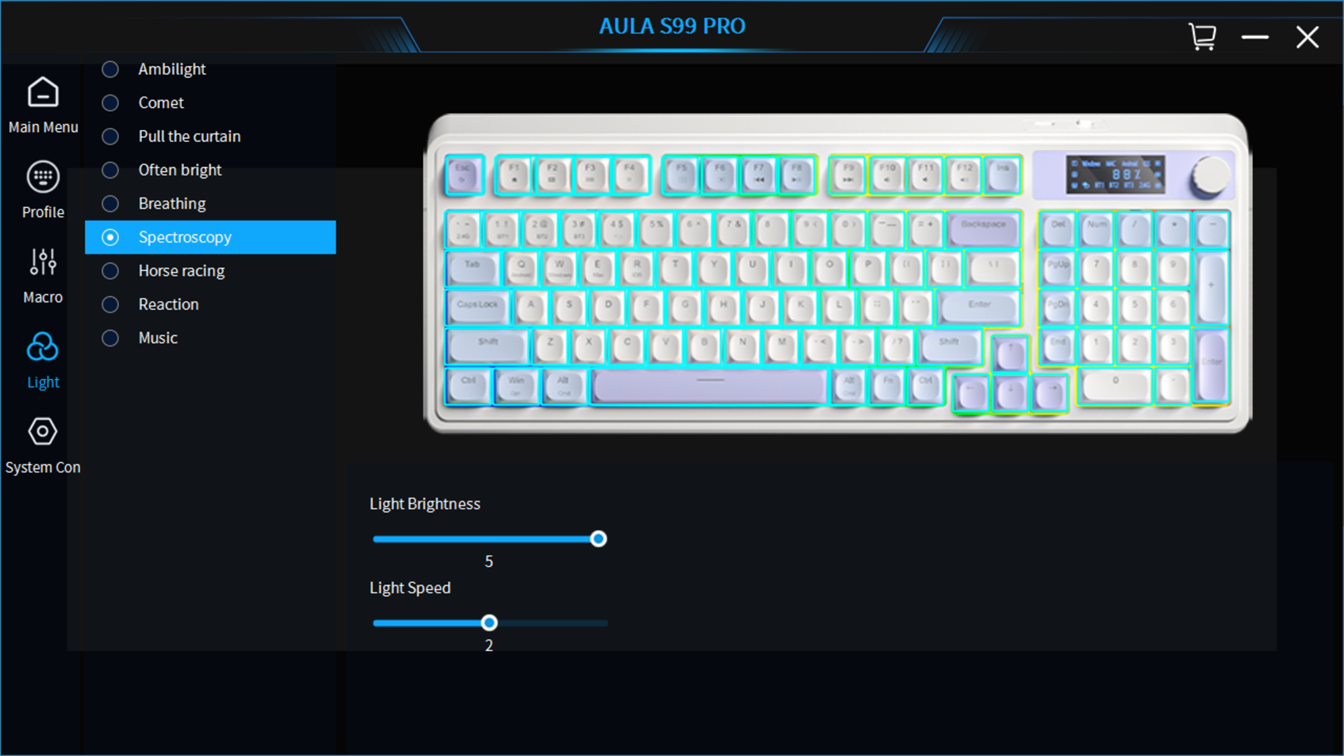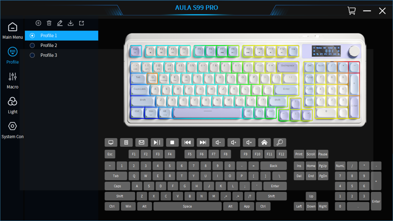 (10% מהציון הסופי)ב-AULA מציעים תוכנה שתומכת במקלדת, אלא שכאן העניינים התחילו להסתבך - ובלי שום סיבה ברורה. באתר היצרנית אין שום אזכור לדגם הספציפי (ה-S99 ללא ה-Pro דווקא כן מופיע), כך שאין סיכוי למצוא כרגע באתר קישור ישיר לתוכנה הספציפית שתואמת למקלדת שלפנינו. ניסינו להוריד תוכנות של דגמים "סמוכים", בלי הצלחה; המקלדת פשוט לא זוהתה במחשב. כלומר בניגוד לתוכנות כמו G HUB של Logitech או Synapse של Razer ודומיהן, שמאגדות את כל מוצרי החברה תחת תוכנה אחת, כאן יש דרייבר משולב תוכנה לכל מקלדת בנפרד. רק אחרי פנייה ליבואנית באג הצלחנו להשיג קישור זמני להורדת הדרייבר. מה יעשו משתמשים אחרים? כנראה שגם יבזבזו את הזמן בפנייה לשירות הלקוחות, אחרי שיגלו שאין שום נוכחות לדגם המקלדת באתר היצרנית, נכון לפחות לכתיבת שורות אלה.
